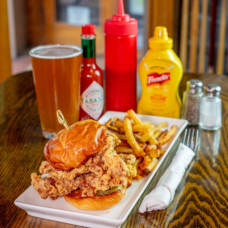 6 oz hand formed fresh patty on a macrina bakery bun, sub beyond burger or chicken +$3.00 | Includes choice of house fries, small green salad, soup or coleslaw. Sub sweet potato fries, tater tots, or onion rings for +$3.00